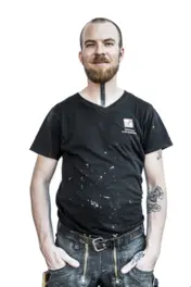 Yanis Stöger - Der Schreinergeselle und Sohn von Manfred Walcher hat Künstlerblut in den Adern. Er bereichert unser Team bei allen Fragen, die sich um Oberflächengestaltung, Lackierung und Kunst drehen.