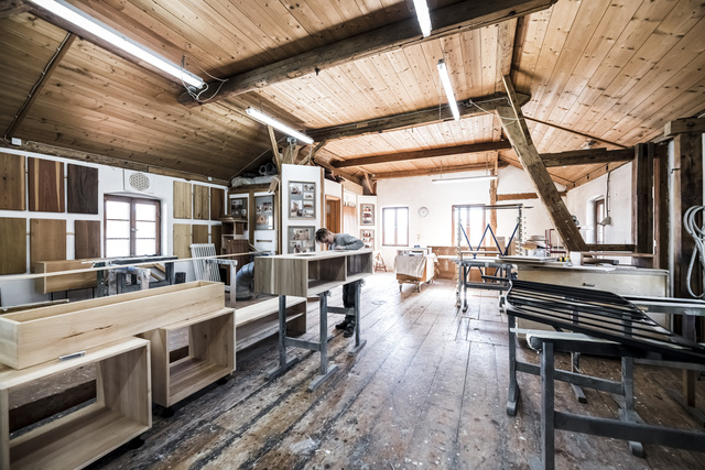 Wer uns als Kunde in der Schreinerei in der Walzmühle besucht, der spürt sofort das besondere Flair dieses Ortes. Unweit von Pferdekoppeln und dem altehrwürdigen Wasserschloss Pertenstein an der Traun ist der idyllische Sitz unserer Manufaktur. Zwischen Obstbäumen und inmitten eines historischen Gebäudebestands direkt am Mühlbach gelegen, erhebt sich das über 100 Jahre alte Gebäude der Walzmühle. Auf den einzelnen Stockwerken bis hinauf zum Planungsbüro unter dem Dach kann man den Werkstattprozess live miterleben. Wie aus Massivholz traumhafte Möbelstücke werden. Oder Küchen, Bäder, Arztpraxen, Treppen, Türen sowie komplette Inneneinrichtungen. Eine Atmosphäre, die nicht nur uns inspiriert.
